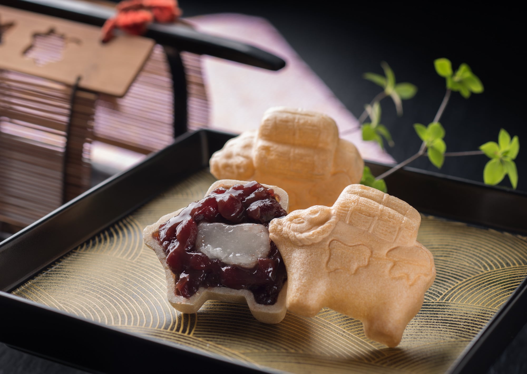 津観音の門前はいつの時代も繁栄を極め、その縁日に欠かせないのが豊年満作を祝うかのような土産の「俵牛」でした。弊店ではこの「俵牛」を型どり、伊勢津観音土産として最中をお作りしております。